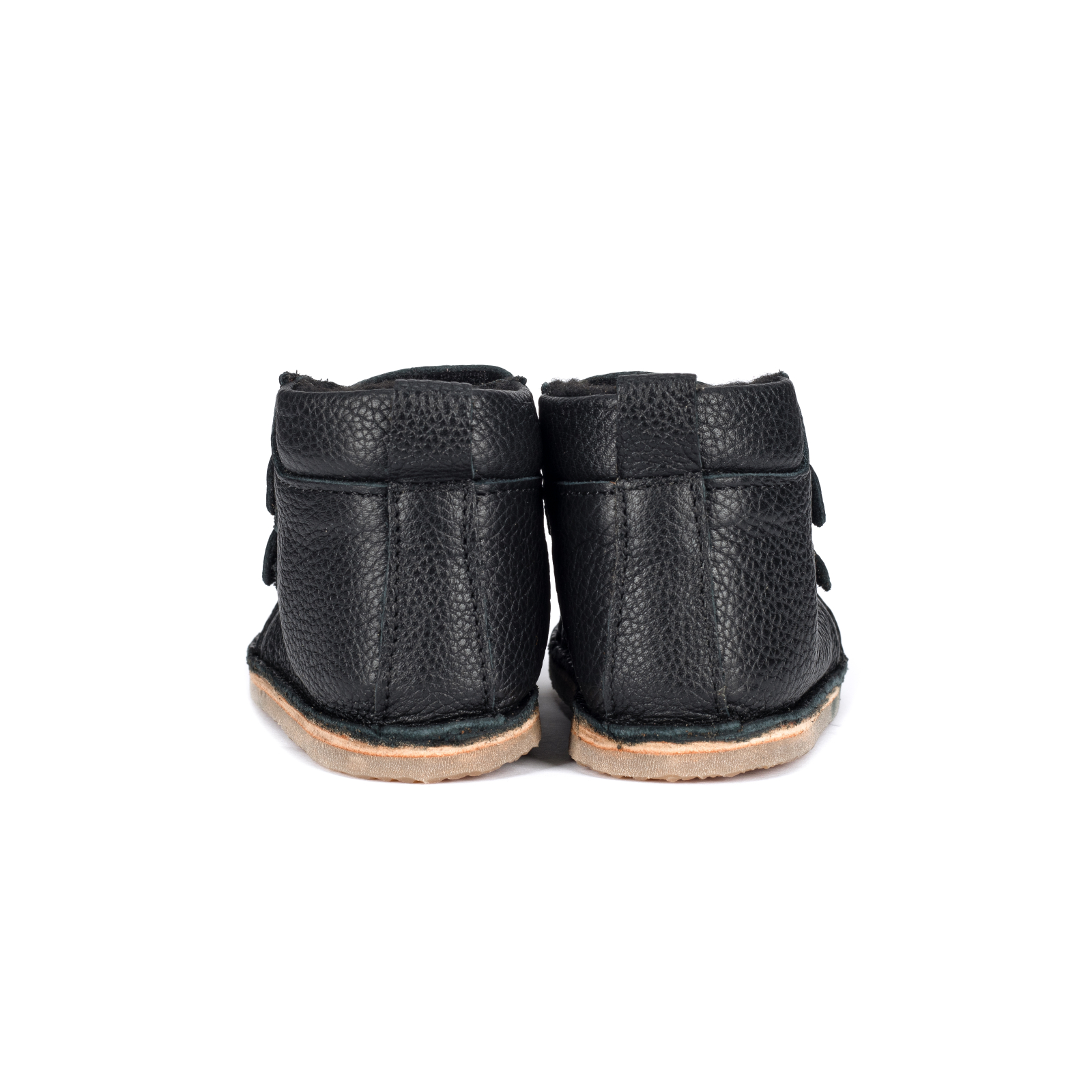 Ghetute din piele naturala, moale, cu talpa din cauciuc, flexibila, antiderapanta si blana sintetica pe interior, inclusiv pe talpic pentru a mentine piciorul copilului cald si uscat chiar si in sezonul rece.