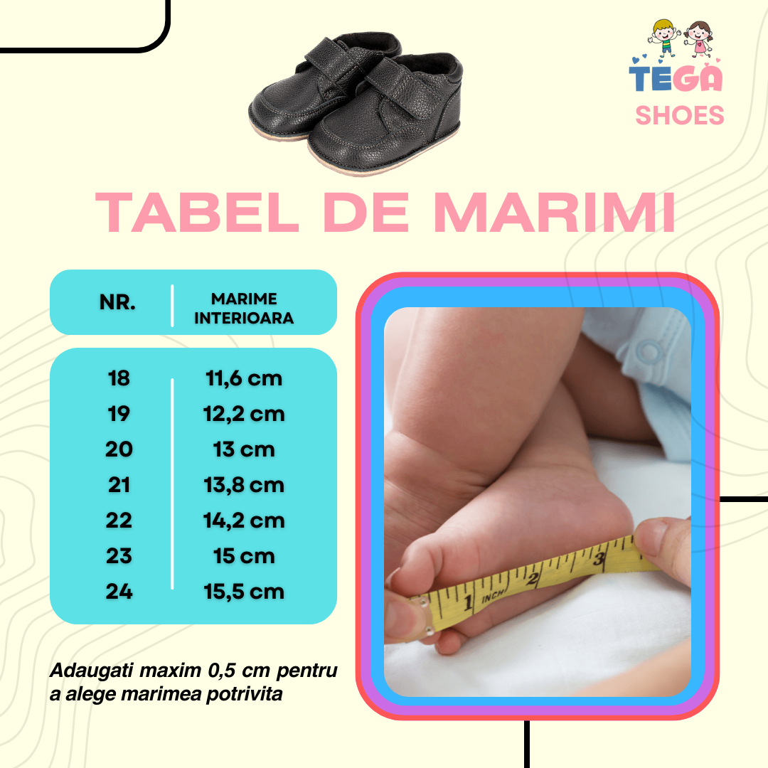 Incaltamintea din piele naturala cu talpa moale din cauciuc este alegerea ideala pentru o dezvoltare naturala a piciorului copilului.